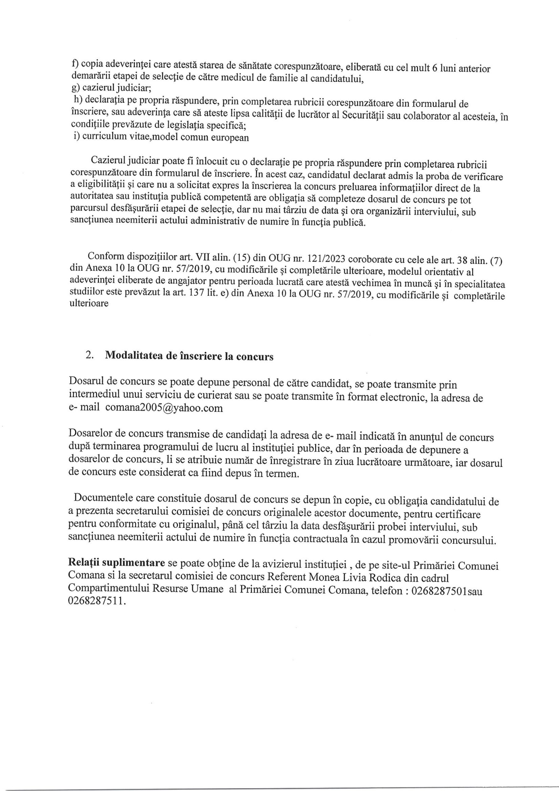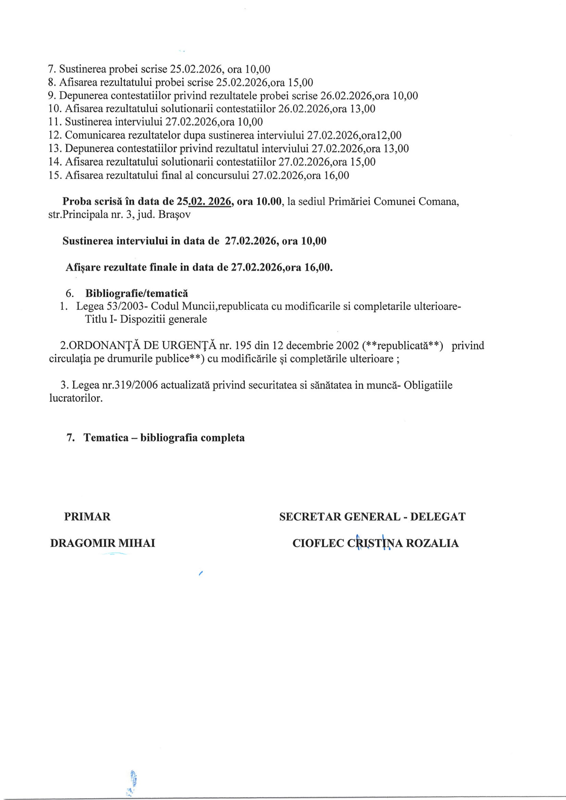 Primaria Comunei Comana, cu sediul in sat Comana de Jos, judetul Brasov, str. Principala nr. 3, organizeaza