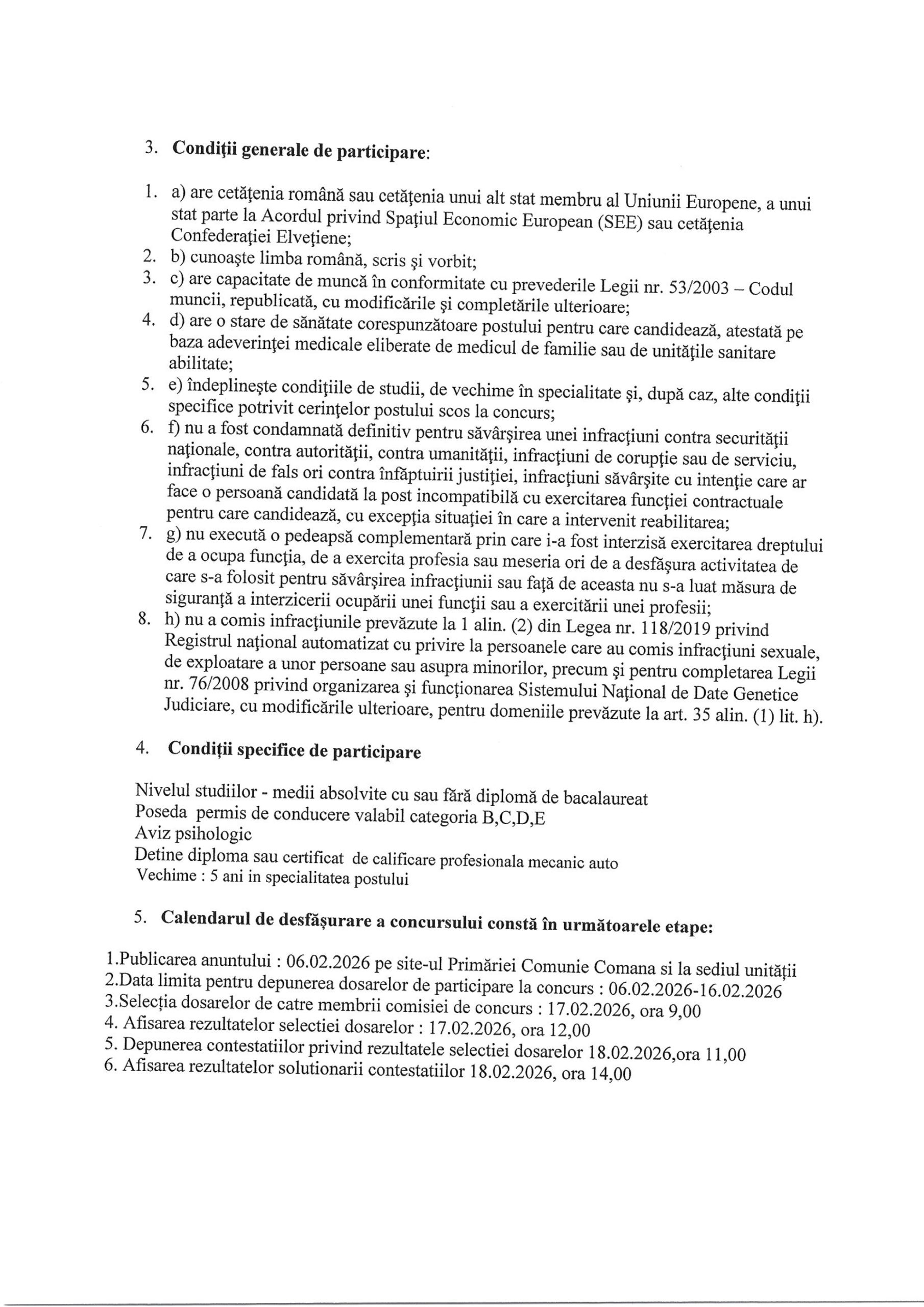Concurs pentru ocuparea unei functii contractuale de executie – Sofer, 1 post vacant, perioada nedeterminata, program de lucru 8 ore/zi, 5 zile /saptamana