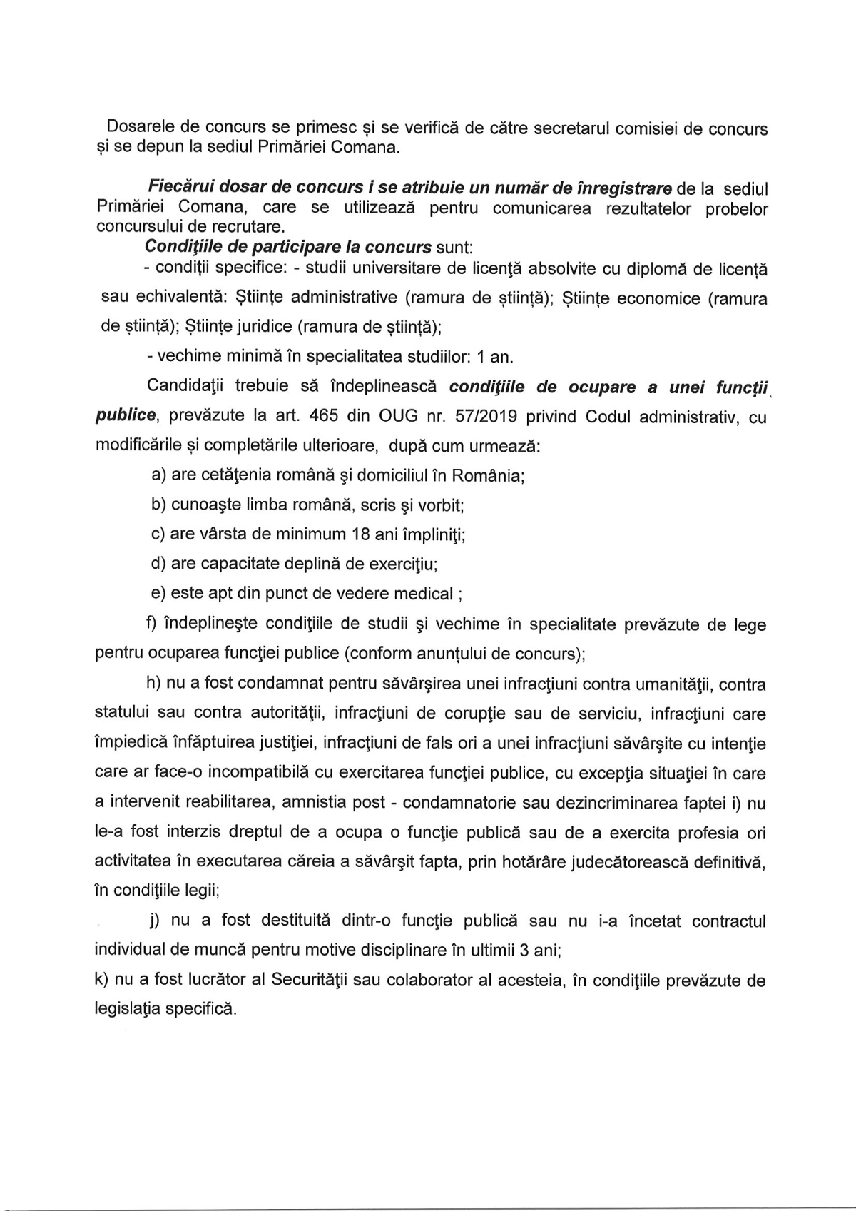 – proba scrisa: 14.11.2025, ora 11:00 – sediul Primariei Comana;